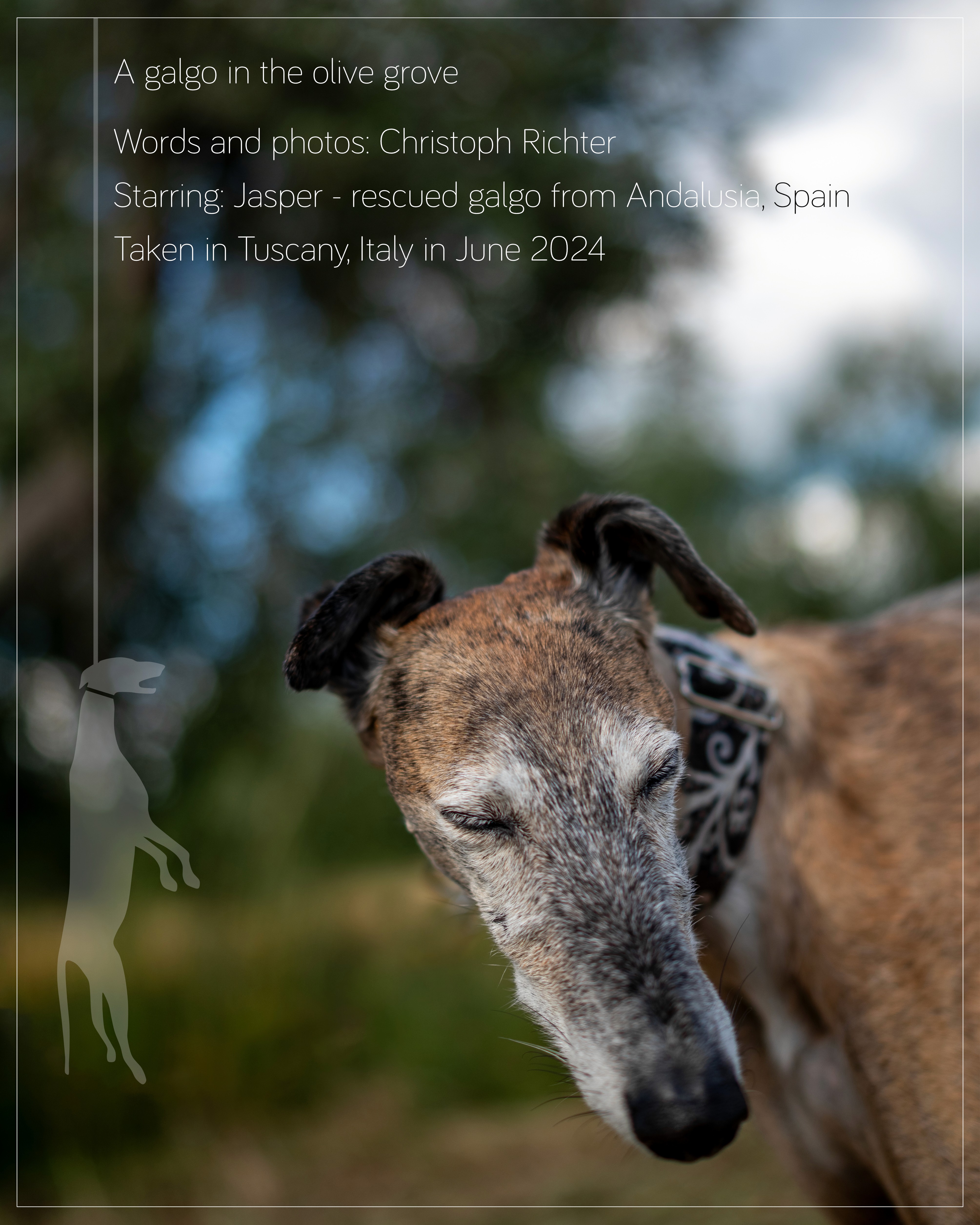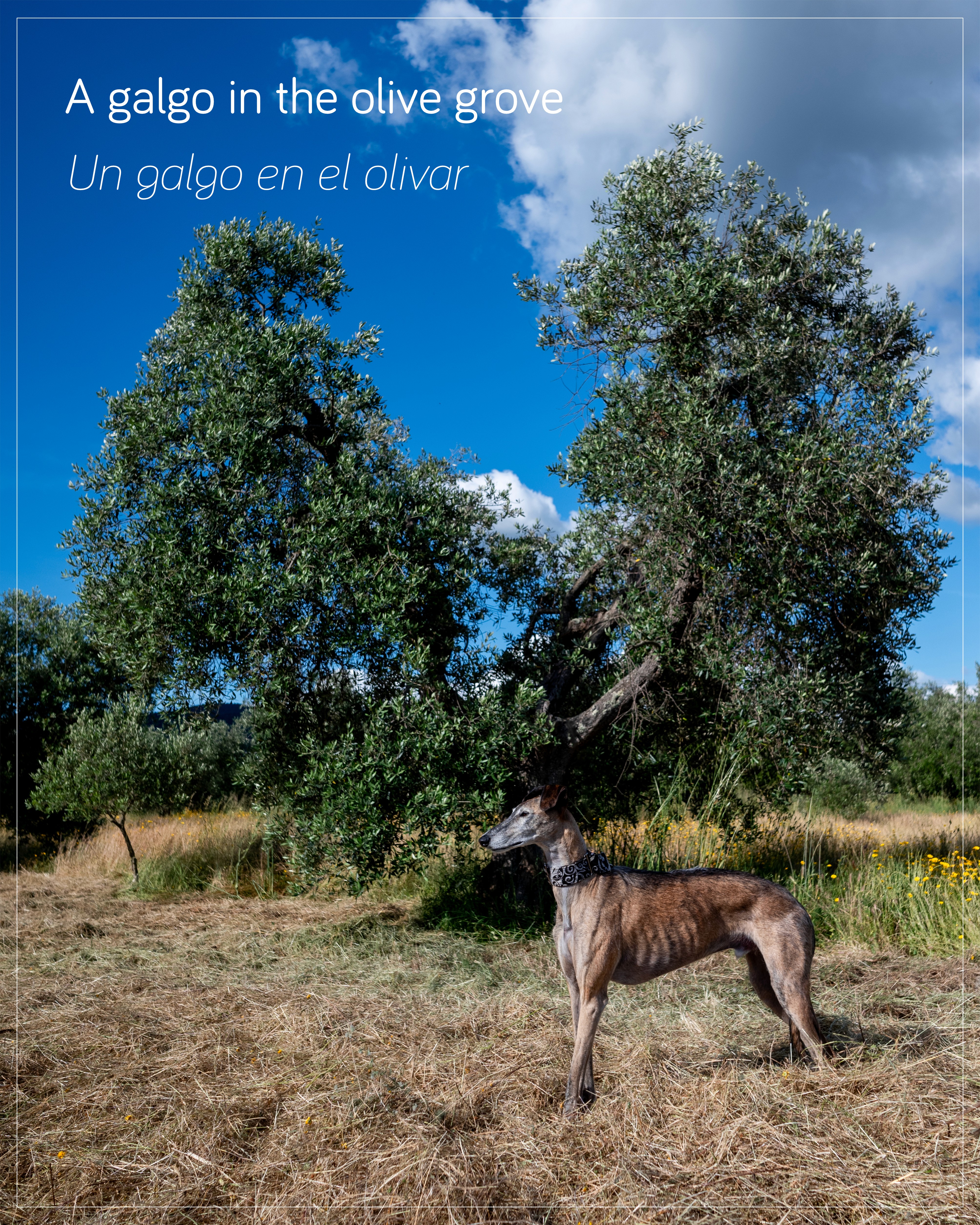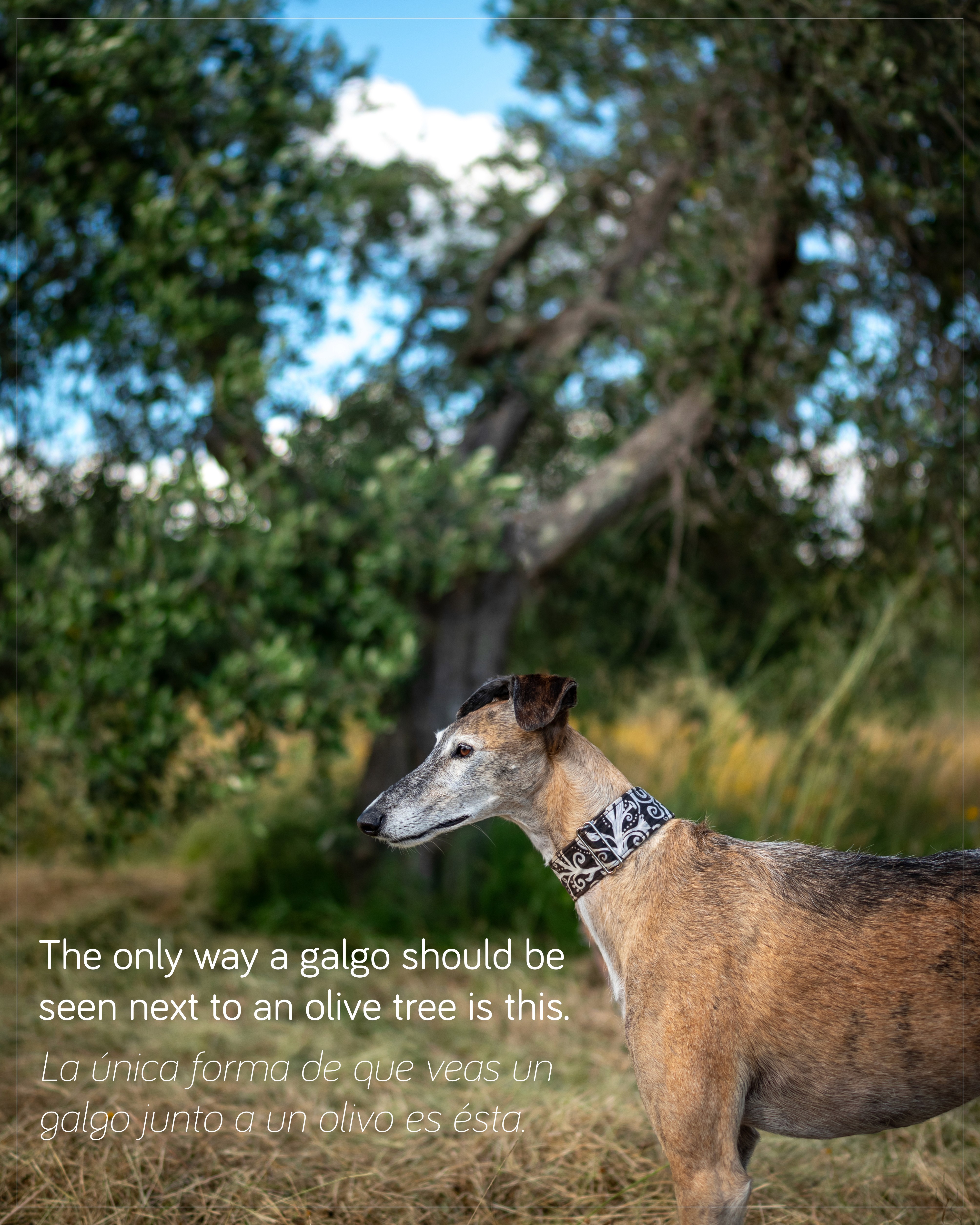Das ist die einzige Weise, wie man einen Galgo neben einem Olivenbaum sehen sollte.